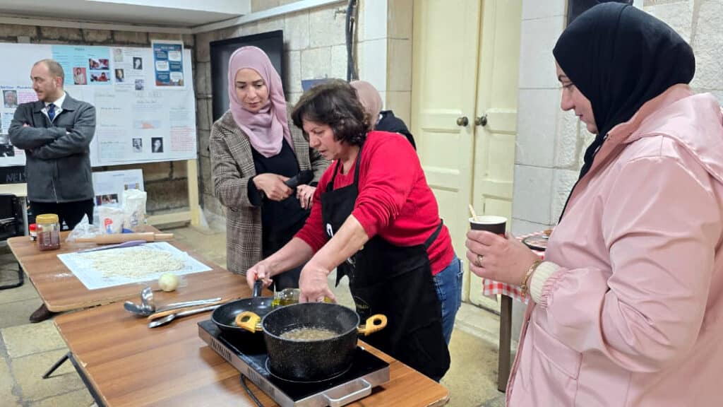 El Masou had the opportunity to participate in the Al-Quds School’s Slow Food Program. “One of the most joyful experiences for me,” she confirmed. “We shared traditional reshta (noodle) and lentil dishes. The interaction with students and teachers was wonderful. I hope these activities and programs continue, as they positively impact the community by introducing the new generation to our heritage and traditional foods, helping to prevent them from fading away.”