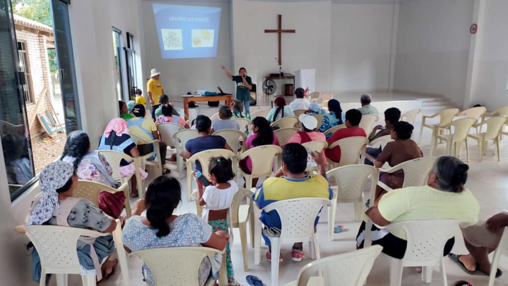 Community member training in health and sanitation are part of the program for receiving new sanitation facilities – Cristo El Buen Pastor Church, Cobija, Pando, Bolivia. Photo: FIEA-Bolivia