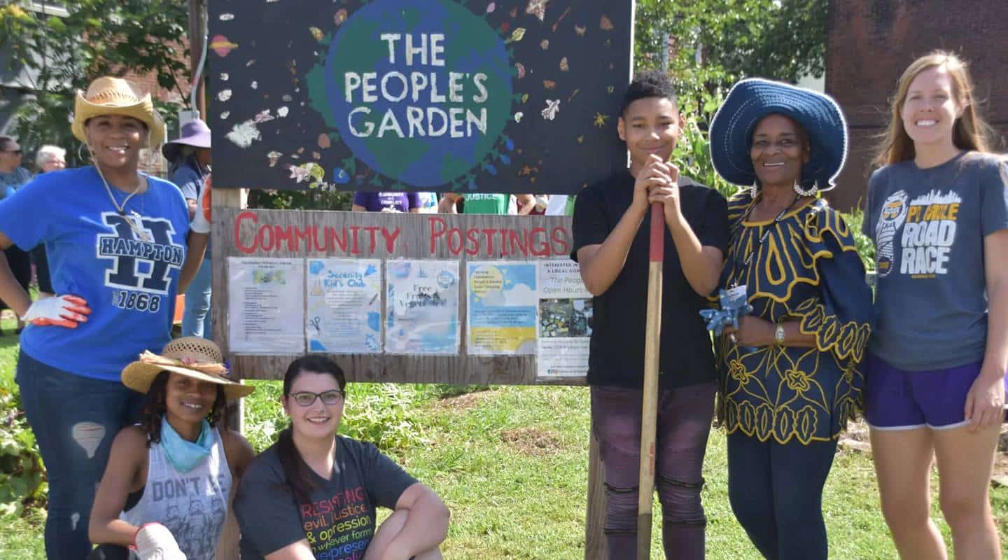 Shari Ponder, Temekia Powell, Rachel Collins, Marcel Cantu, Cheryl Taylor and Kristi Painter at the Serenity House Garden for the EarthKeepers training in Philadelphia
